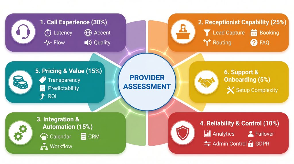 | Integrations | 15% | CRM write-back speed, UK-specific software support. |